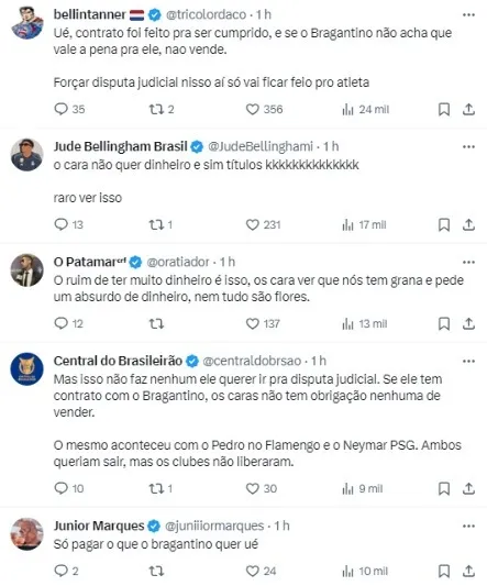 A alegação dos dirigentes paulistas é que a oferta precisaria vir de fora do Brasil para que esse ‘acordo’ entre eles seja válido. Sabendo da ‘treta’, a diretoria flamenguista, inclusive, aceitou aumentar o valor proposto inicialmente, desde que diminuam a exigência.