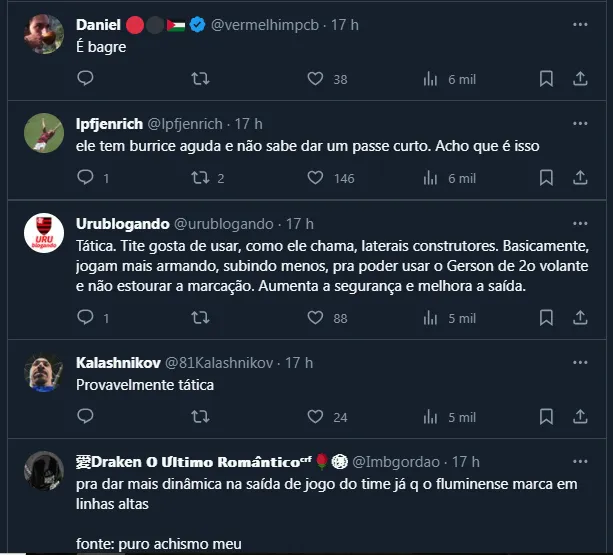 Quer dizer, por mais que Ayrton Lucas seja um dos principais nomes do Clube da Gávea na temporada, o ex-técnico da Seleção Brasileira pode surpreender e tirá-lo do time titular. O assunto chegou até a torcida do Mengo.
