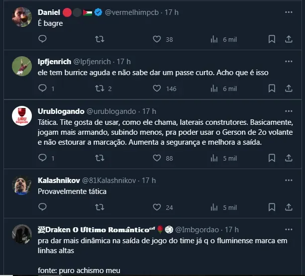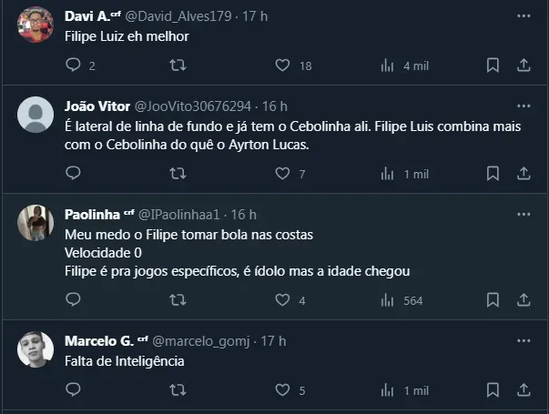 Quer dizer, por mais que Ayrton Lucas seja um dos principais nomes do Clube da Gávea na temporada, o ex-técnico da Seleção Brasileira pode surpreender e tirá-lo do time titular. O assunto chegou até a torcida do Mengo.