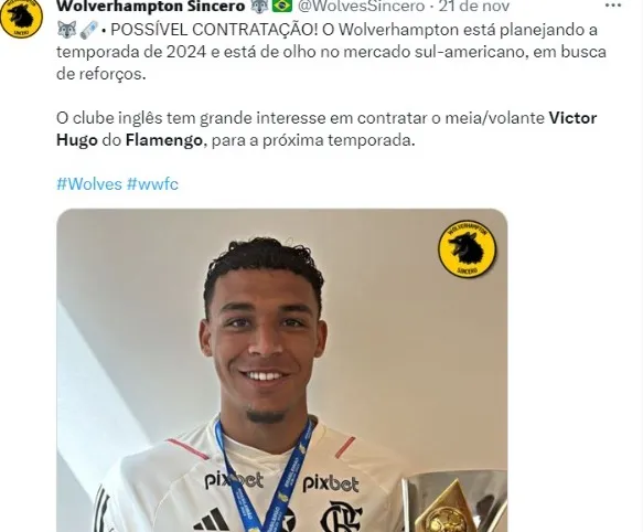 Na última janela de transferências, o Flamengo recusou uma proposta do Wolverhampton pelo meia Victor Hugo, que na ocasião era titular absoluto com Jorge Sampaoli.