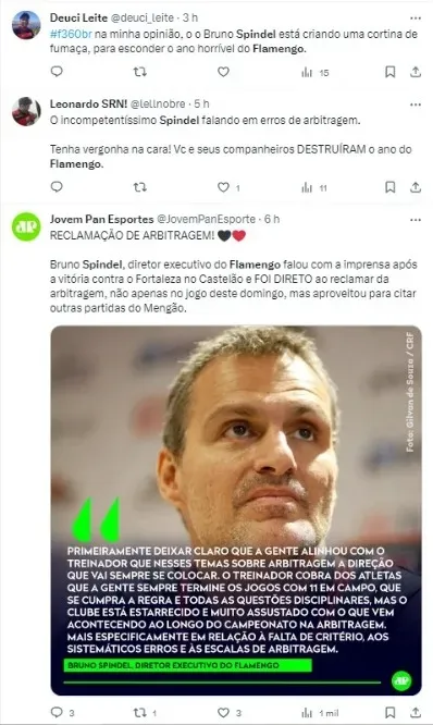 “Mas todas, incluindo a de Spindel, servem apenas para pressionar uma arbitragem já profundamente pressionada. Funcionam mais como um alerta, tipo: ‘Não vem errar contra mim de novo'”, acrescentou o comunicador.