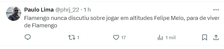 “Ninguém fala absolutamente nada. Foi só um joguinho na altitude, seis horinhas de voo. O jogo de domingo às 4h da tarde. Penso que se fosse ao contrário não teria jogo. Cabe até discussão sobre isso”.