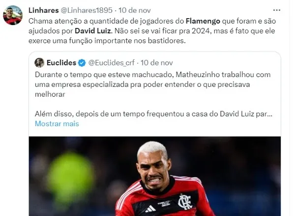 “Se a decisão do Flamengo for não manter o David Luiz, ele está aberto a negociar”, concluiu a jornalista, que cobre diariamente o Fla em suas redes sociais.