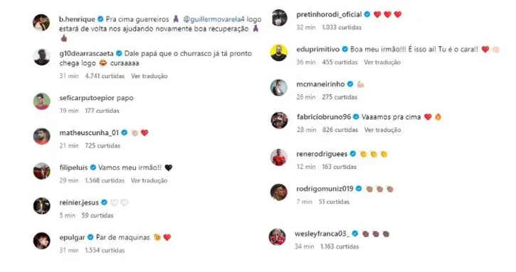 A mensagem também desejou o breve retorno ao lateral uruguaio: “Estendo o nosso abraço de ontem por aqui. Que a sua recuperação da lesão no joelho seja breve e que esteja conosco o quanto antes. Seguimos em busca do bem coletivo. Pelo Flamengo!” Muitos companheiros de elenco se manifestaram nas redes, saudando a nobre atitude de Gerson.