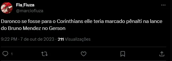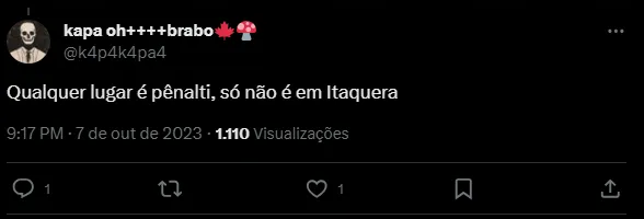 “Qualquer lugar é pênalti, só não é em Itaquera”, “No Itaquerão pode jogar de vôlei?”, “Em Itaquera não existe braço, Nação” e “Daronco, se fosse para o Corinthians ele teria marcado pênalti na lance do Bruno Mendez no Gerson”, forama alguns dos comentários.