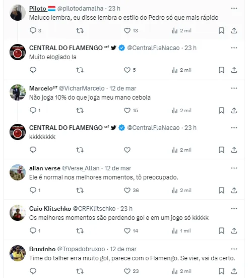 — CENTRAL DO FLAMENGO ᶜʳᶠ (@CentralFlaNacao) March 12, 2024