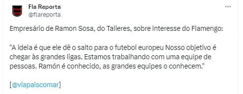 Em entrevista para o portal Vía País, um empresário do paraguaio Ramón Sosa deixou claro qual o objetivo do seu jogador para o futuro de sua carreira e um recado chegou ao Rubro-Negro Carioca.
