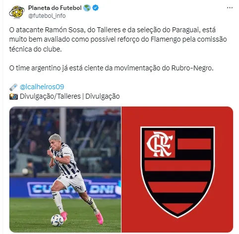 Trata-se do atacante paraguaio Ramón Sosa, joia sul-americana de apenas 24 anos, que está no Talleres, da Argentina. Ele vem se destacando no futebol argentino e chamando atenção.