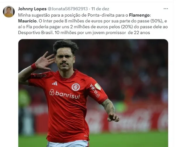 Ainda durante o Campeonato Brasileiro, André Cury voltou a oferecer o meia de 22 anos ao Rubro-Negro, como aconteceu em outras oportunidades nos últimos anos.
