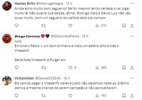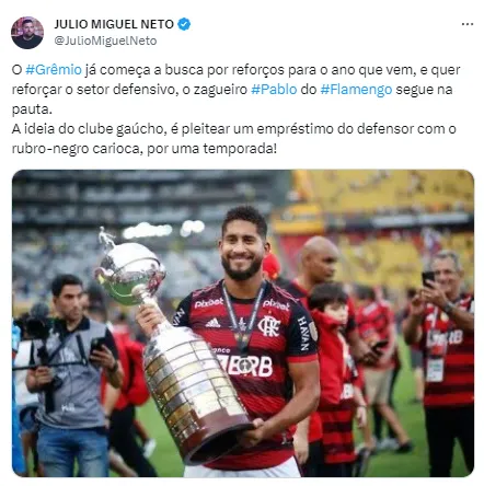 O comunicador destacou o interesse do Grêmio em um medalhão do Fla. “O Grêmio já começa a busca por reforços para o ano que vem, e quer reforçar o setor defensivo, o zagueiro Pablo do Flamengo segue na pauta”.