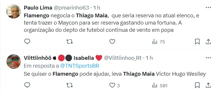 Diante disso, a expectativa é que mais uma saída seja concretizada nos próximos dias. Trata-se de Thiago Maia, que vem tendo o futuro incerto no Rubro-Negro. O Internacional tem interesse no jogador, mas as negociações não avançaram.