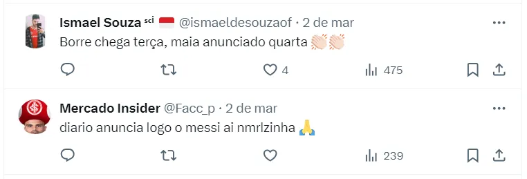 Entretanto, esses não devem ser os únicos reforços da equipe para a temporada. Isso porque, a diretoria vem trabalhando internamente buscando atender alguns pedidos de Tite, além de reforçar posições mais fragilizadas. Com isso, se aproxima de anunciar a chegada de mais um reforço.