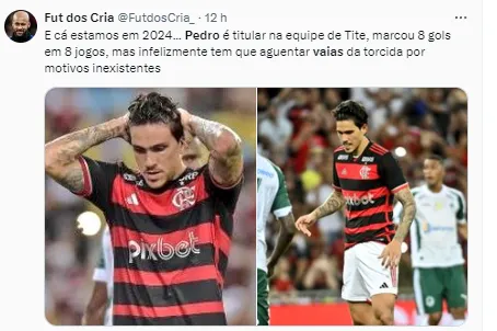 “A melhor fotografia é o Pedro rindo depois do jogo. Aquela coisa não bateu no Pedro como uma vaia, protesto, tanto que o Pedro vai jogar o Fla-Flu no domingo. Pode ser que faça gol, pode ser que não faça, acho que a vida seguiu. Não é um problema agora para o Flamengo se preocupar”, afirmou Eric Faria.