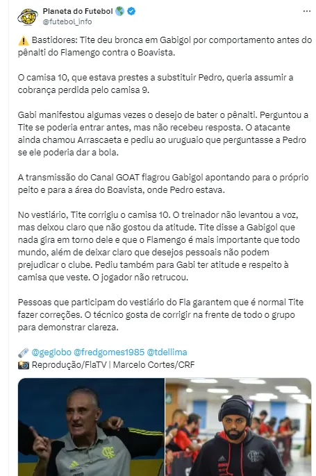 Isso deu muita repercussão e deu o que falar. Muitos bastidores sobre a situação surgiram e até Gabigol esteve no meio de situações que surgiram nos últimos dias, após a partida.