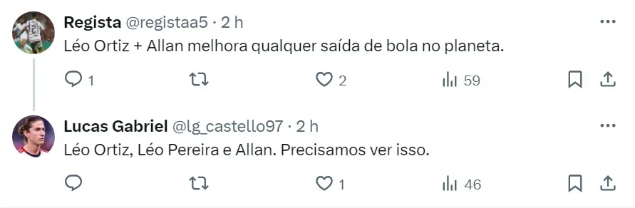Já em treinamento nesta segunda-feira (20), Tite indicou a escalação da equipe. Léo Pereira, com lesão na coxa, é desfalque certo e o substituto nos treinos vem sendo Léo Ortiz, de acordo com informação do Globo Esporte.