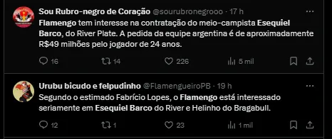 Dois atletas que surgiram nos bastidores da Gávea seriam o meia-atacante argentino Esequiel Barco, do River Plate, da Argentina, e o atacante Helinho, do Red Bull Bragantino. A informação do interesse do CRF na dupla foi trazida por Fabrício Lopes