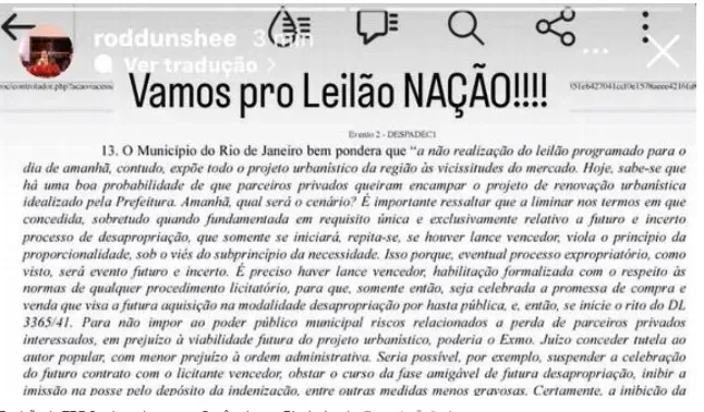 “Vamos pro LEILÃO NAÇÃO!!!”, escreveu o dirigente em um post no stories do instagram, com um print ao fundo com a decisão do TRF-2 que manteve o leilão.