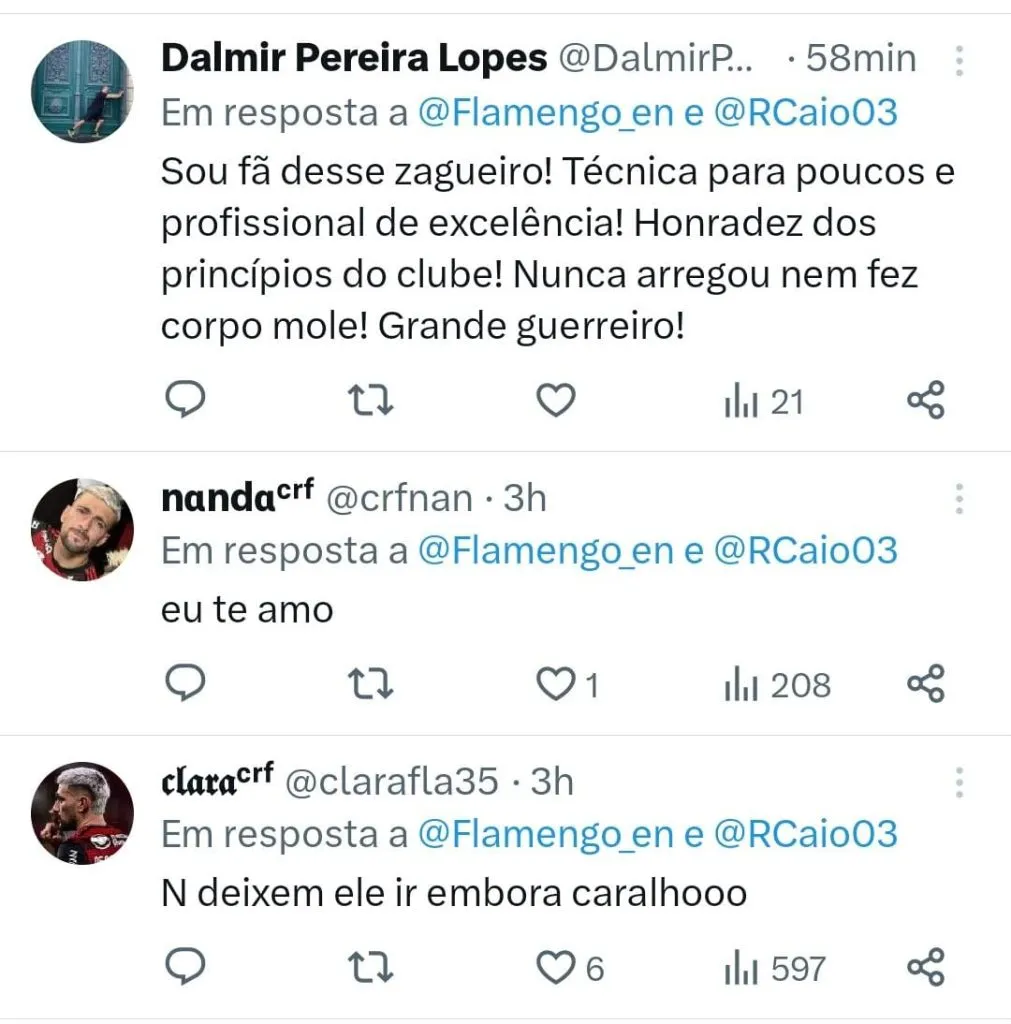 “Não só pelas conquistas, as conquistas são maravilhosas, mas as amizades que eu fiz, o respeito que eu adquiri, não só dos meus companheiros de equipe, mas da instituição e dessa nação imensa. Isso para mim é o que fica (…) Onde eu estiver eu vou estar torcendo e vibrando pelas vitórias do Flamengo.”, afirmou.