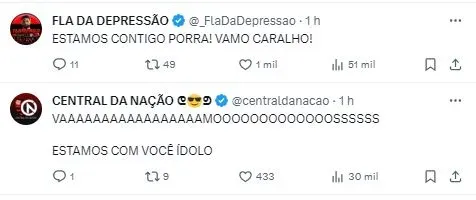 Como não poderia ser diferente, a publicação mexeu com a Nação, que em sua esmagadora maioria respondeu à manifestação do camisa 10 com mensagens de apoio e de confiança sobre uma reviravolta positiva de Gabigol no Flamengo.