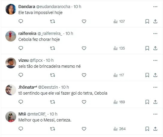 Cebolinha foi além e ainda disse que uma vitória como essa faz o time ganhar moral para a sequência da temporada: “É uma tarde muito especial para mim. Particularmente falando, para o grupo também, isso mostra a força do nosso grupo. Quem iniciou o jogo, iniciou muito bem, quem entrou, conseguiu ajudar também. Isso mostra a força do nosso elenco. A gente sai daqui mais fortalecido. Um campeonato muito difícil que é o Brasileiro”, completou.