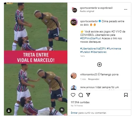Nas redes sociais, muitos desses lances viraram assunto. Em uma jogada, Vidal derruba Marcelo e após o lance ainda vai para cima do lateral reclamar com ele. O juiz da partida precisou intervir.