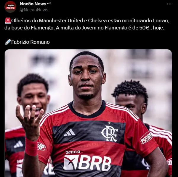 Apesar do alto valor, os clubes europeus não veem a cifra como um problema, já que consideram um investimento a longo prazo. Vale lembrar também que, mesmo com o interesse internacional, Lorran só poderá sair do Flamengo para times de fora do Brasil a partir de julho de 2024, quando completa 18 anos. Isso porque a Fifa permite transferências internacionais apenas quando o atleta completa a maioridade.