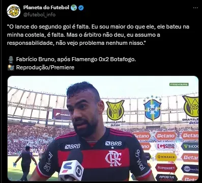 Na saída de campo, em entrevista exclusiva ao vivo para o Premiere, o zagueiro Fabrício Bruno apontou qual fator foi diferencial para a derrota do Fla no clássico contra o rival carioca.