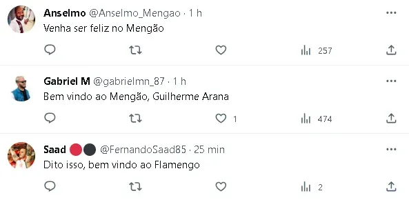 Vale mencionar também que, em meio a esse episódio, diversos torcedores de outros times, principalmente do Flamengo, reagiram ao caso na web, pedindo a contratação de Guilherme Arana, já que o episódio poderia tê-lo desgastado no Atlético-MG e ele é visto como um dos principais jogadores que atuam como lateral-esquerdo no Brasil.