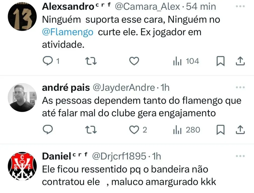 Por fim, o medalhão afirmou que hoje o amor que ele tem pelo Flamengo não é mais o mesmo e revelou que tem muito sentimento pelo Palmeiras e agora pelo Fluminense.