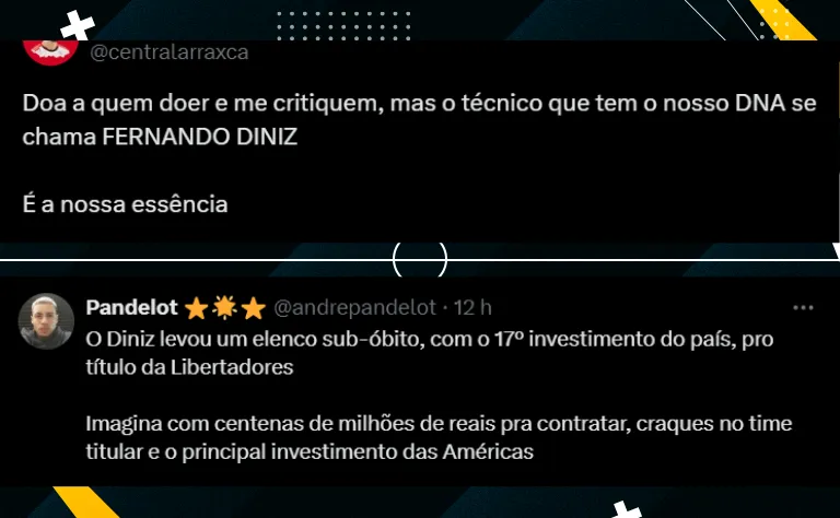 Mesmo que reforços sejam pedidos, diante do resultado apresentado em campo com o desempenho dentro das quatro linhas, os torcedores já definiram um substituto ideal, que é o atual campeão da Libertadores com o Fluminense, Fernando Diniz.