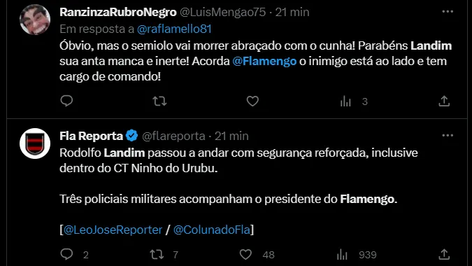Para evitar o pior frente a toda pressão que o Fla está enfrentando pelos frequentes vexames sofridos na temporada, Landim contratou 3 seguranças particulares, que no dia a dia são policiais e fazem o extra na retaguarda do executivo. A Coluna do Fla confirma a informação publicada na noite desta sexta-feira (22).