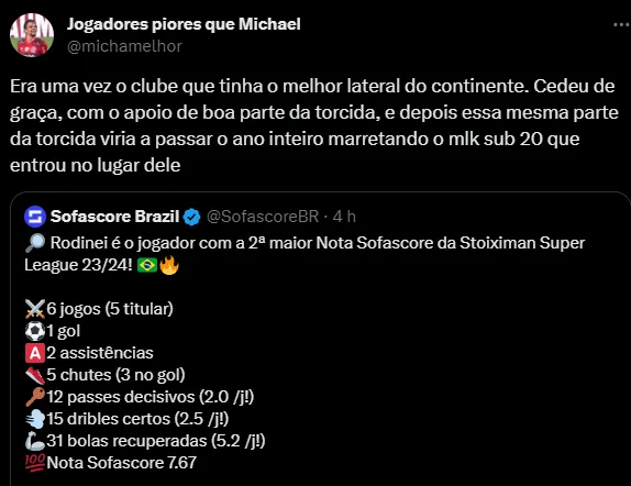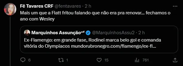 “Era uma vez o clube que tinha o melhor lateral do continente. Cedeu de graça, com o apoio de boa parte da torcida, e depois essa mesma parte da torcida viria a passar o ano inteiro marretando o moleque sub-20 que entrou no lugar dele” e “Mais um que a Flatt fritou falando que não era pra renovar… fechamos o ano com Wesley”, foram alguns dos comentários.