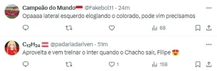 “Falei com o Filipe Luís sobre a oferta do Inter. Ele me disse que era o local certo, que o Coudet me faria crescer muito como jogador. Considerei um “sinal verde” de que estava fazendo a escolha certa”, revelou.