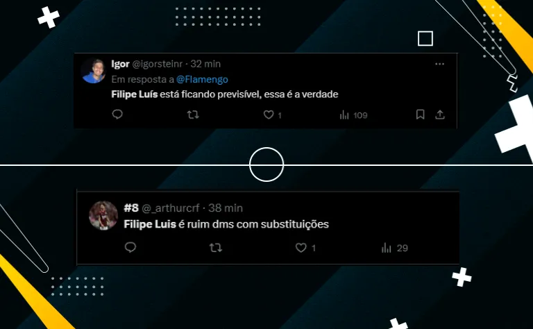 Durante a 2ª etapa, o que foi mais criticado foi a demora para realizar as substituições e as escolhas feitas: “Ultimamente, Filipe Luís está errando nas alterações“. “O time caiu de rendimento após as mexidas feitas“, foram dois comentários.