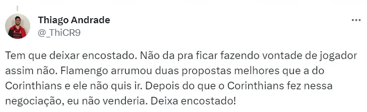 Nos últimos dias, o Bota se mostrou disposto a pagar o que era pedido pelo Flamengo (4 milhões de euros) de forma fixa e à vista. No entanto, jogador e staff dão preferência ao Corinthians – o que irritou o rival carioca.