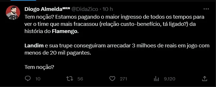 Mas, o comunicador destacou que dificilmente Jorge Sampaoli e Marcos Braz deixarão a equipe antes da final da Copa do Brasil. Entretanto, aumentaram as cobranças sob Landim, que vinha garantindo a permanência do treinador. A torcida prepara um protesto para esta quinta-feira (14), na Gávea, onde terá como alvo Rodolfo Landim, Marcos Braz, alguns jogadores e Sampaoli. O objetivo é pedir que ocorra uma reformulação no Flamengo.