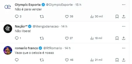 “A diretoria do Fla recebeu contato dos empresários do atacante sondando a situação, mas a cúpula avisou que nem adiantaria mandar oferta porque o atleta não será negociado”, completou Venê em sua postagem.