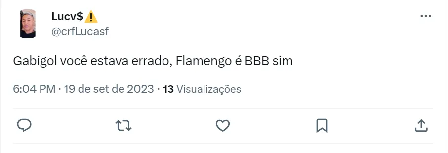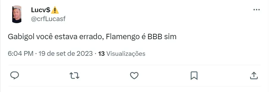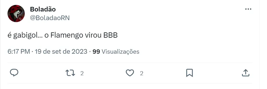 “O Flamengo literalmente acabou irmão, o que está acontecendo em 2023 é coisa de outro mundo, chegou ao nível que O DIRETOR do clube está agredindo um torcedor. É uma bagunça, uma várzea total. @gabigol, o Flamengo é um BBB sim”, disse um torcedor do Fla no Twitter. “Como que não é BBB se toda hora tem treta? CLUBE DE PANCADARIAS DO FLAMENGO”, disse outro flamenguista na rede social.