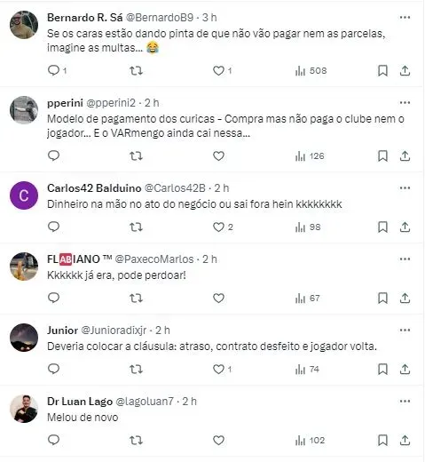 No contrato costurado entre as partes, a direção Rubro-Negra determinou uma cláusula que aponta uma multa caso o Corinthians atrase os pagamentos das parcelas.