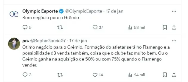 Porém, com o vazamento da negociação, a torcida gremista fez uma pressão e agora a diretoria do clube gaúcho pede uma recompensa para liberar o atleta. A expectativa é que o jovem zagueiro assine um vínculo de quatro anos com o Flamengo.