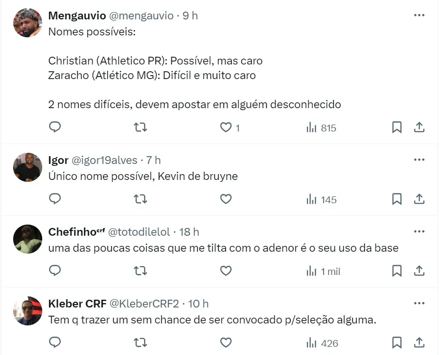 Os outros atletas citados no ranking foram Yuri Alberto, do Corinthians, Jhon Arias, do Fluminense, e Murilo, do Palmeiras. O estudo comprova a força do elenco rubro-negro, que ainda pode receber um reforço com as características de Gerson.