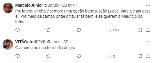 Vale ressaltar que, atualmente, Tite conta com Wesley e Varela como principais opções para o setor. Aliás, o último citado se envolveu em uma polêmica com a torcida ao incluir o nome de um dos maiores rivais do Fla em uma postagem.
