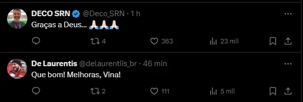 Na noite do domingo (14), o clube publicou uma nota oficial sobre o lateral: “O Clube de Regatas do Flamengo informa que o atleta Viña foi encaminhado ao hospital – seguindo o protocolo de concussão cerebral. O lateral realizou exames que não constataram lesão cerebral. Segue em acompanhamento pelo Departamento Médico Rubro-Negro e retorna com a delegação ao Rio de Janeiro“.
