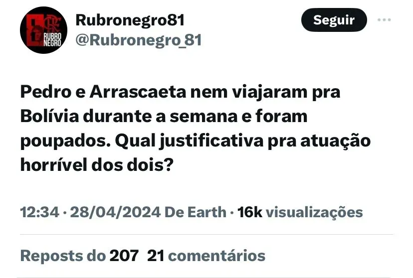Mais detalhes do pós do Fla