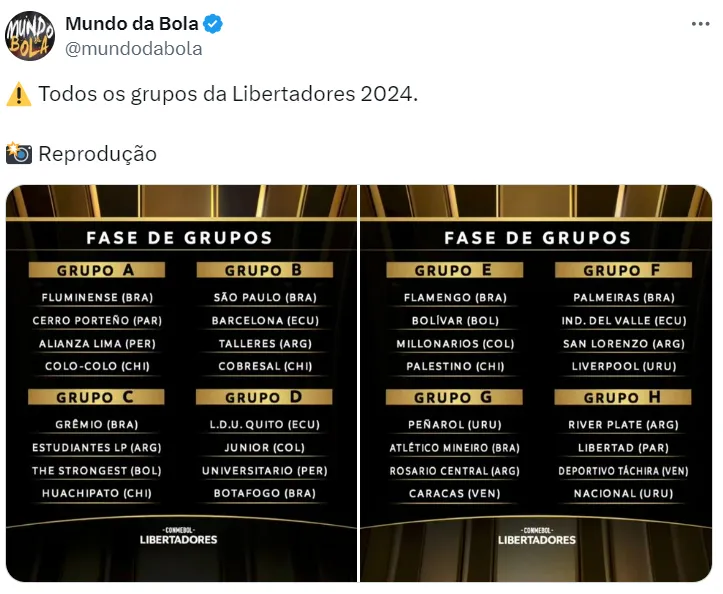 No Grupo F, os adversários do Flamengo não ostentam grandes números. O Millonarios tem valor de mercado de 26,85 milhões de euros, já o Bolívar tem 11,93 milhões de euros. Por fim, o mais “pobre” é o Palestino, com 10 milhões de euros em valor de mercado.