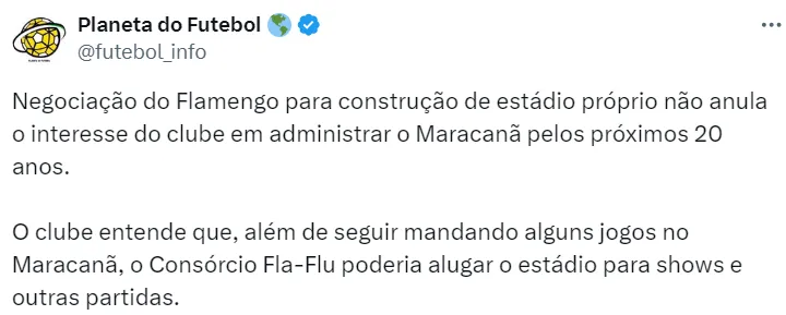 Atualmente, o Flamengo manda os seus jogos no Maracanã. Porém, o plano do Rubro-Negro é mudar essa situação o mais rápido possível. Para isso, o clube quer seu estádio próprio.