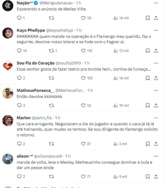 “O Corinthians não vai ser mais refém de ninguém. Me dê o passe estipulado, a condição e está tudo certo. Flamengo está fora, em viagem, liguei hoje para o Braz. Assim que chegar, vai ser resolvido“, continuou Melo.