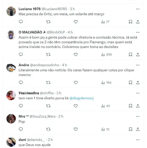 “Mesmo se fosse mais intenso no mercado, o Fla vê outra dificuldade: convencer jogadores de alto nível a ser segunda ou terceira opção, sabendo que a chance de atuar com frequência só viria em um momento específico do ano”, concluiu.