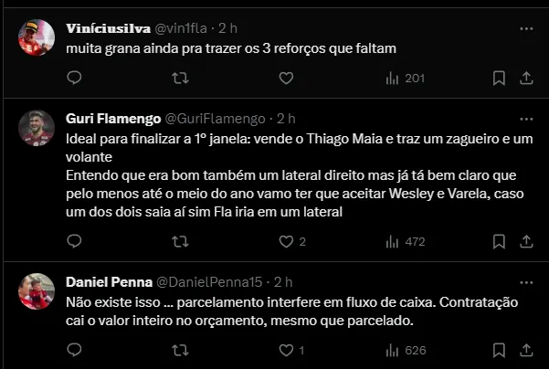 A torcida do Flamengo está confiante com o time montado, até o momento, para a temporada de 2024. O clube reforçou o elenco de Tite com dois jogadores uruguaios.