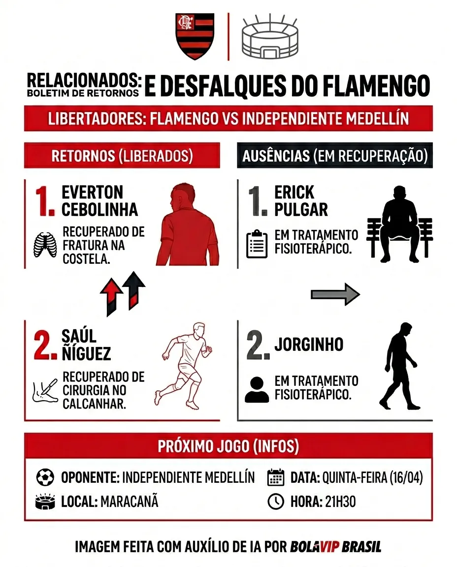 O Flamengo divulgou a lista de relacionados para o confronto contra o Independiente Medellín nesta quinta-feira (16), válido pela segunda rodada da Libertadores. A partida será disputada no Maracanã, às 21h30, e conta com novidades importantes no elenco.